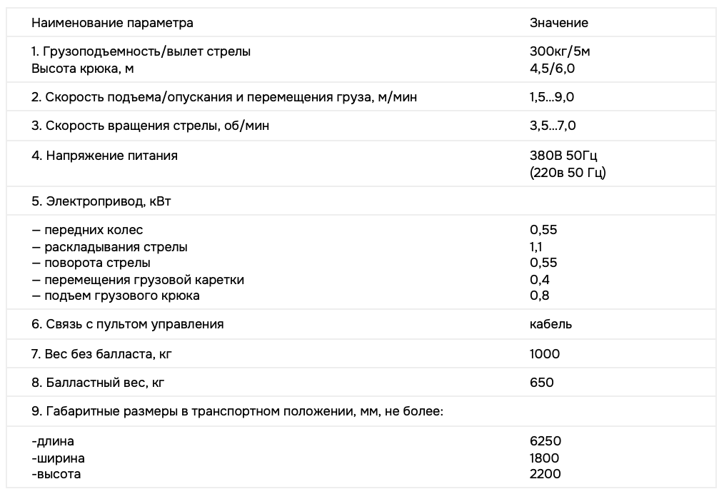 Мини-кран предназначен для погрузочно-разгрузочных и строительных работ. Габариты крана позволяют производить его перевозку малогабаритным грузовым транспортом. Кран представляет собой рамную конструкцию, на которой смонтирована раскладывающаяся стрела с механизмом поворота. Грузовая каретка снабжена цепной лебедкой.