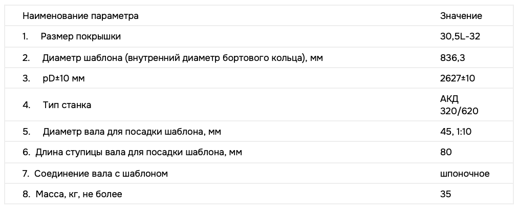 Шаблон 32″ к агрегату АКД 320/620 предназначен для навивки в один или два ручья из резино-проволочной пряди бортовых колец для покрышек на кольцеделательном агрегате.