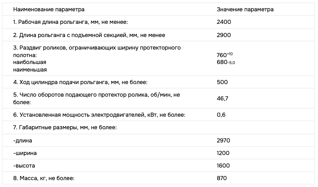 Питатель протектором типа ПП-800, индекс ГКНЮ 0.041, предназначен для хранения и подачи протекторной заготовки на барабан станка для сборки покрышек (например, СПР 2-980-1600). Область применение – шинное производство. Климатическом исполнении УХЛ 4 по ГОСТ 15150-69. Категория производства по пожарной опасности «В» по СНиП 2.09.02-85, класс помещения П-IIа в соответствии с ПУЭ-87. Пример записи питателя при его заказе или в документации другой продукции, в которой он может быть применен:«Питатель протектором типа ПП-800, индекс ГКНЮ 0.041, ТУ 3623-045-47150356-2001».