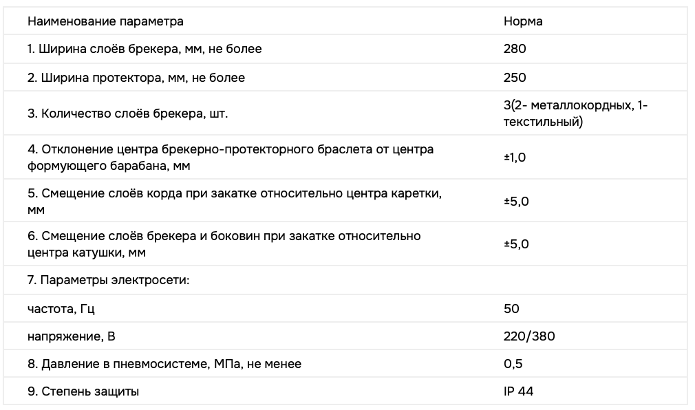 Агрегат для сборки покрышек, типа TR-20М, индекс НЕИА 0.012, предназначен для II стадии сборки легковых покрышек радиальной конструкции с посадочным диаметром 12″-16″ с металлокордным и текстильным брекером, бездиафрагменным и диафрагменным способом. Область применения – шинное производство. Климатическое исполнение УХЛ 4 по ГОСТ 15150-69. Агрегат предназначен для эксплуатации в помещении класса П-IIа по ПУЭ. Категория производства по пожарной опасности «В» по СНиП 2.09.02-85.