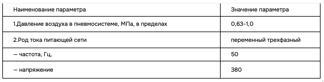 Основные параметры и размеры должны соответствовать Эксплуатационные параметры