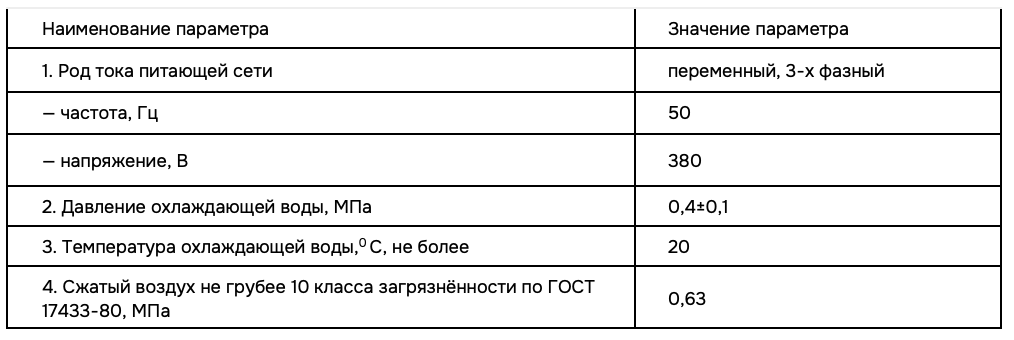 Установка обеспечивает заданные технические характеристики при соблюдении нижеследующих параметров